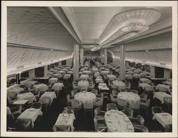 S.S. "Nieuw Amsterdam", 5th Street, Hoboken, N.J., Tourist Class, Cafe.