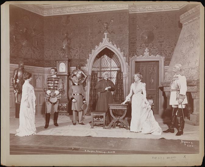 A scene from R. Marshall's comedy "A Royal Family" presented by Charles Frohman at the Lyceum Theatre in 1900, featuring Annie Russell as the Princess Alestine Victorine Angela.