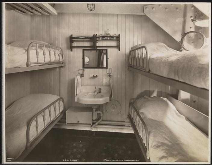 French Line, S.S. "Roussillon" Pier 99 North River, Interior, Third Class 4 Berth Stateroom #480-486.