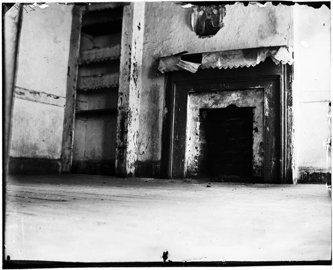 The rear room in the top floor of 55 Baxter Steet in which Mrs. Nino was murdered -- since deserted. On May 23, the splash of blood on floor and walls was there yet.