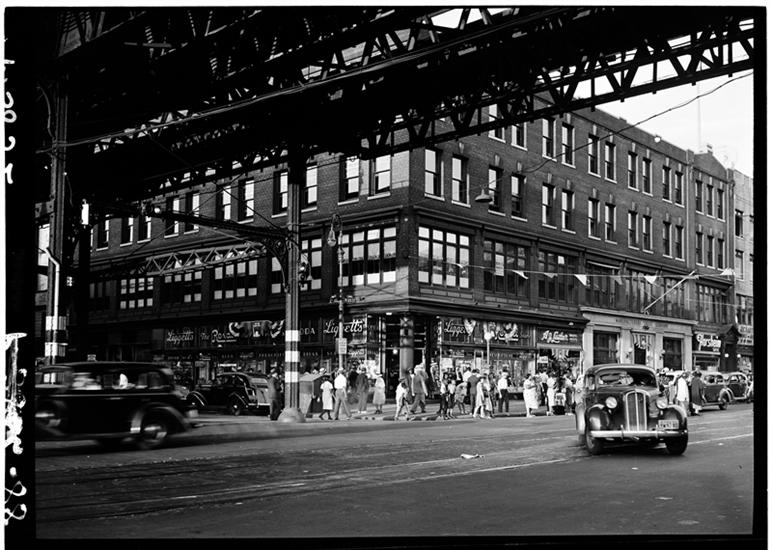 Street Scene in Harlem in front of Daniel's Bar and Grill.