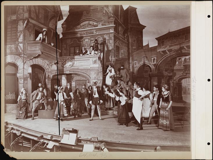 A scene from Act II of J.I.C. Clarke's dramatization of Knight Tompkins play "Her Majesty, The Girl Queen of Nordenmark" presented at the Manhattan Theatre in 1900.