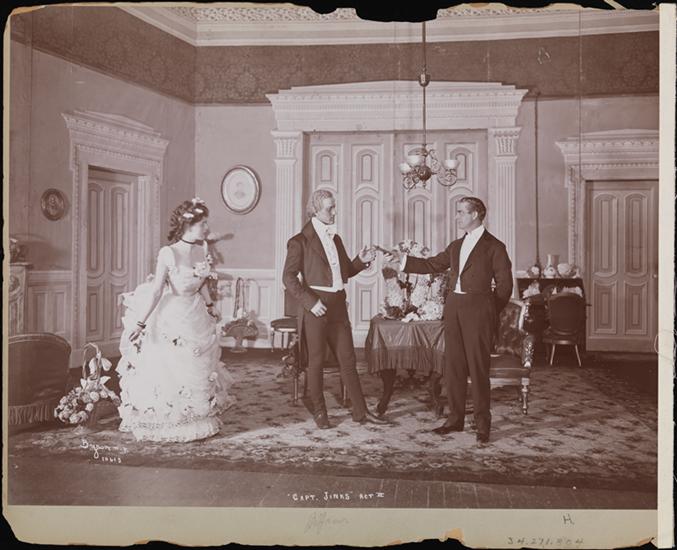 Description A scene from Act III of "Captain Jinks of the Horse Marines" by Clyde Fitch, presented at the Garrick Theatre and featuring Ethel Barrymore in her Broadway debut.