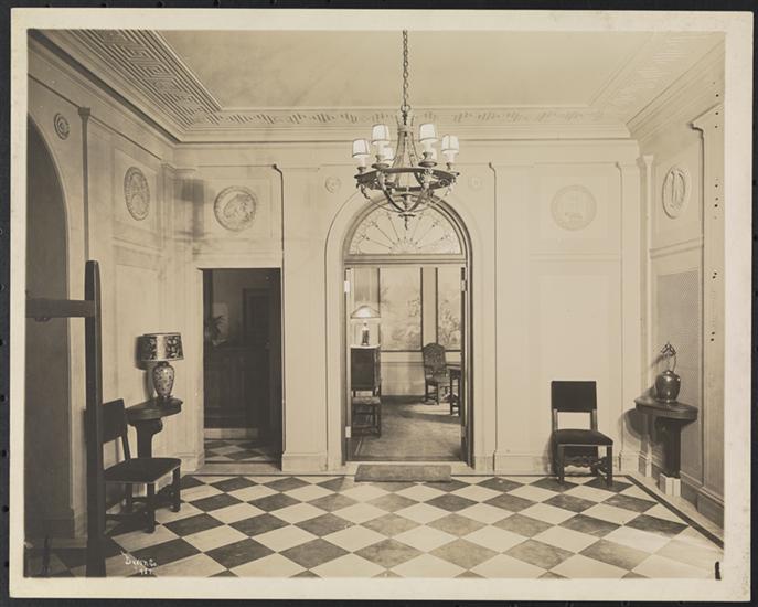 Allerton House, 143 East 39th St., Interior, Entrance Hall looking towards the lounge.