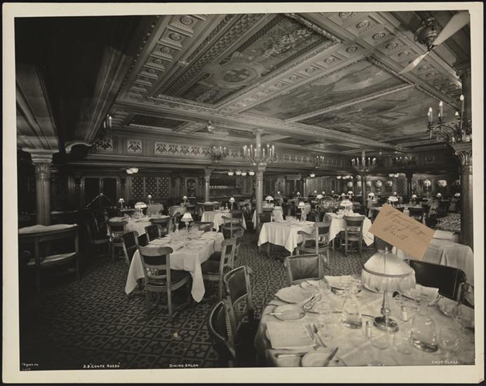Lloyd Sabaudo Line, S.S. "Conte Rosso", Col Serrati, Interior, Dining Room.