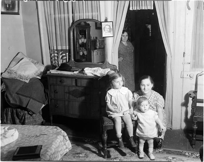 Kitchen Interior, Woman Ironing and Man with Small Child