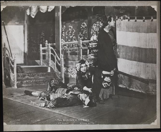 "'The Darling of the Gods'/R.T. Haines Blanche Bates" on neg.