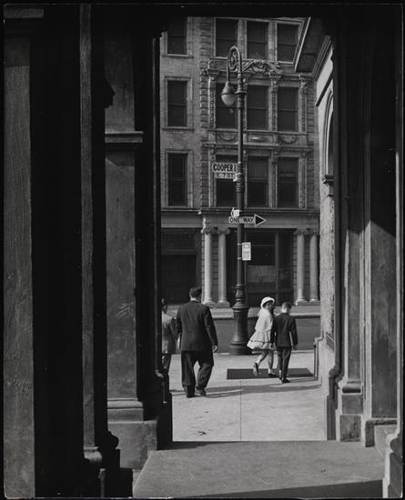 [Between 7th and 8th Streets, looking downward from the Textile Study Room in the Cooper Union Museum.]