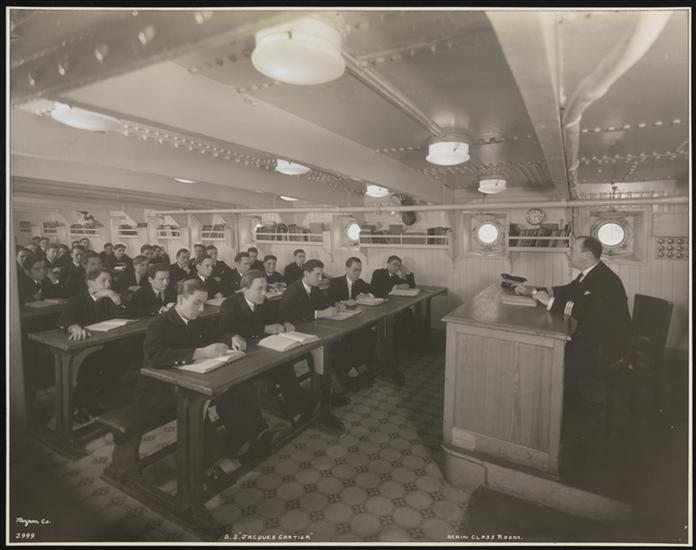 French Line, S.S. "Jacques Cartier" Training Ship, Interior, Main Class Room.