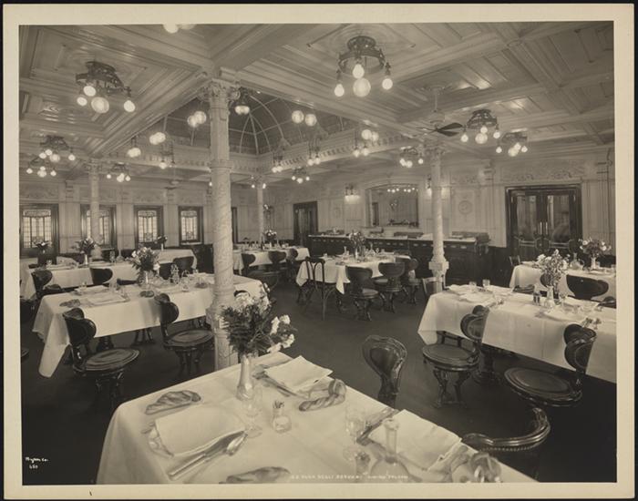 French Line, S.S. "France", Interior, Second Class, Dining Room.