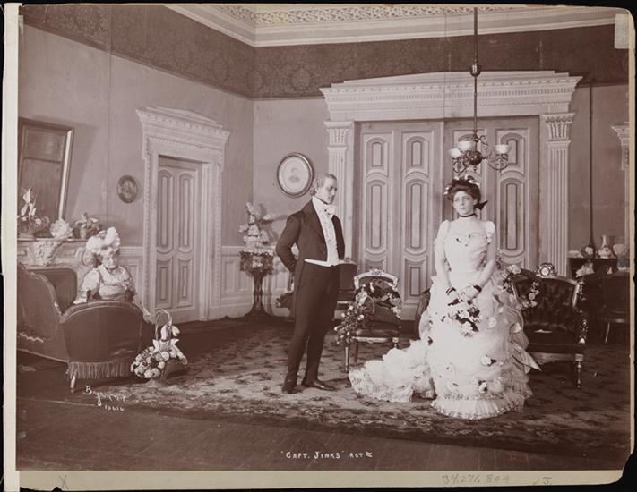 Description A scene from Act III of "Captain Jinks of the Horse Marines" by Clyde Fitch, presented at the Garrick Theatre and  featuring Ethel Barrymore in her Broadway debut.