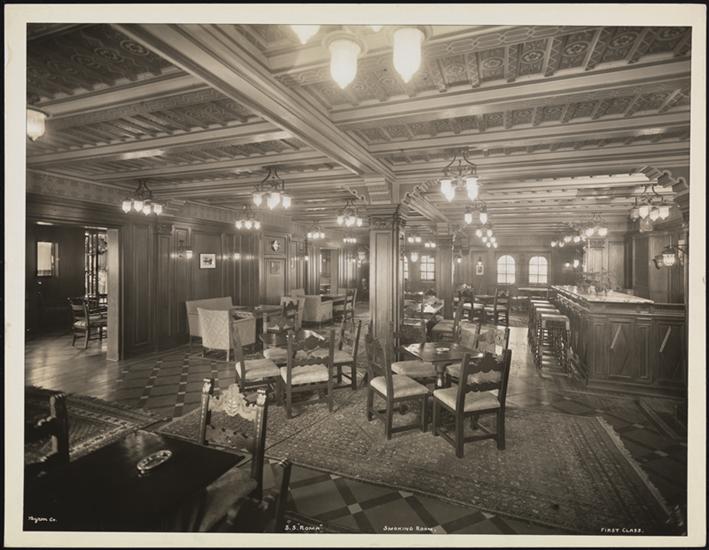 Italia-America Shipping Corp., S.S. "Roma", Pier 97 North River, First Class, Interior, the Bar.