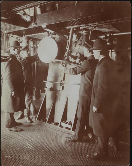 Men in a mechanical room aboard the S.S. "Kaiserin Auguste Victoria".