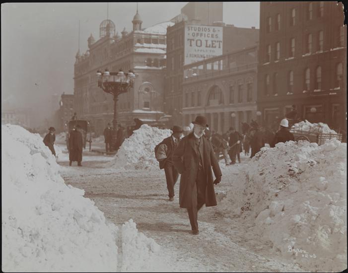 Snow Scenes, Blizzard, Street Scenes in New York City.