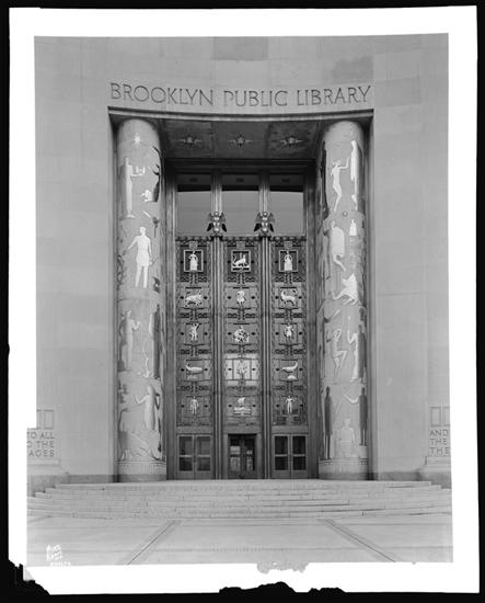 Grand Army Plaza and Eastern Parkway. Brooklyn Public Library. Detail of entrance doorway