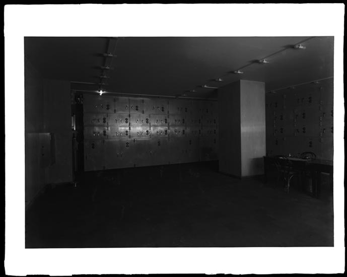 Broadway and Cedar Street. Equitable Building. Empire safe deposit vaults, general view showing coupon booths.
