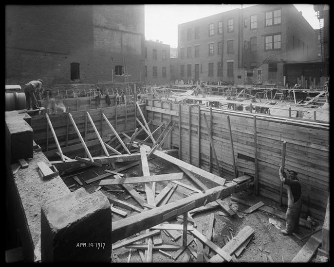 218 West 65th Street. Detail cracks in base west wall to extension.