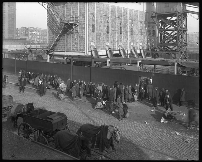 East 110th Street at the Harlem River. Distributing coke [coal] to the poor people.