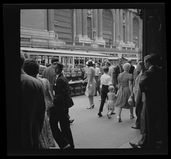 60 East 42nd Street. Lincoln Building, looking south at newsstand in front of entrance, 1:05 p.m.