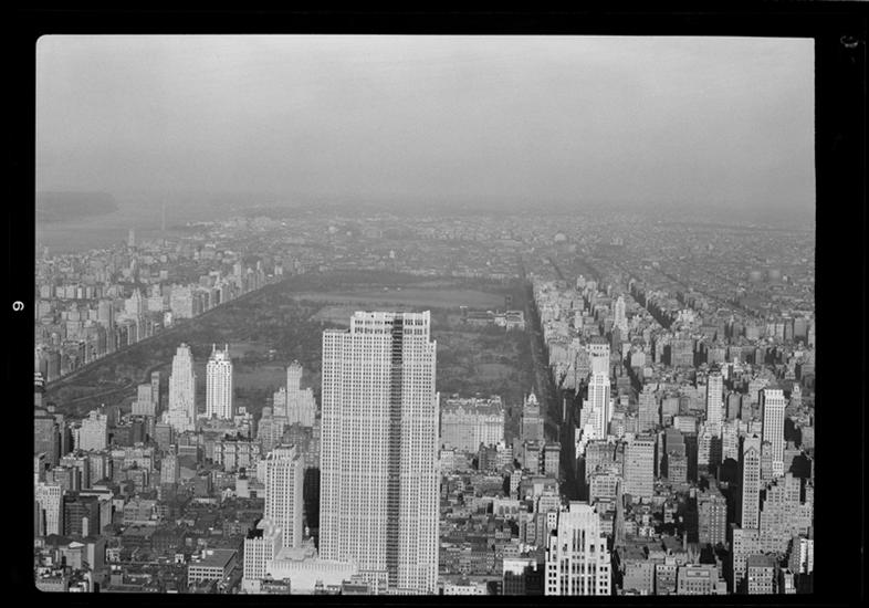 City view looking north toward Central Park with Rockefeller Center, RCA Building under construction