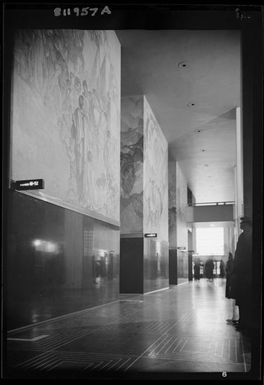 Rockefeller Center. RCA Building, view looking east along Brangwyn murals in main hall.