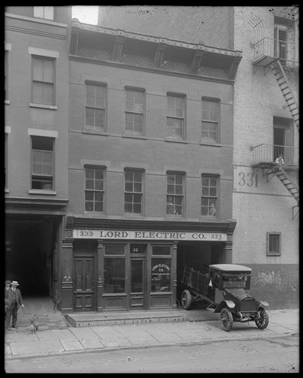 [Exterior of Lord Electric Company, 333 West 49th Street.]