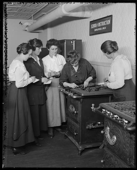 155th Street and Amsterdam Avenue. II. Woman showing housewife how to adjust air for gas burner, to Illustrate Women in Gas Business