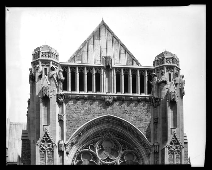 Lexington Avenue and 66th Street. St. Vincent Ferrer Church, view of statuary on top front.