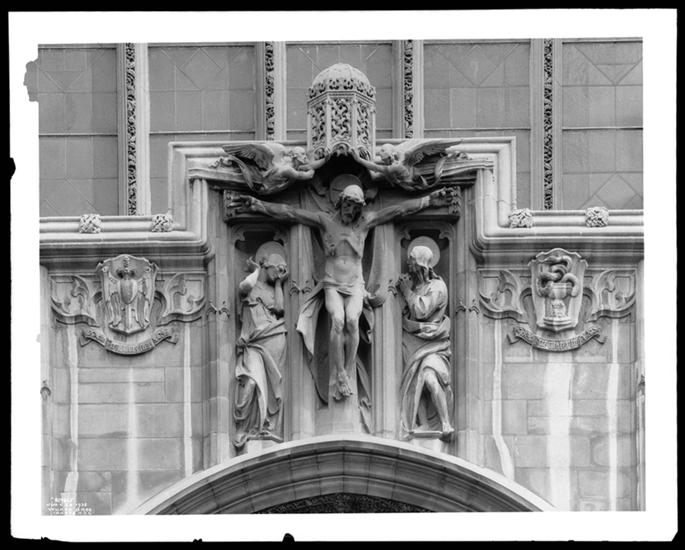 66th Street and Lexington Avenue, S.E. corner. St. Vincent Ferrer Church, detail of crucifixion panel over entrance.