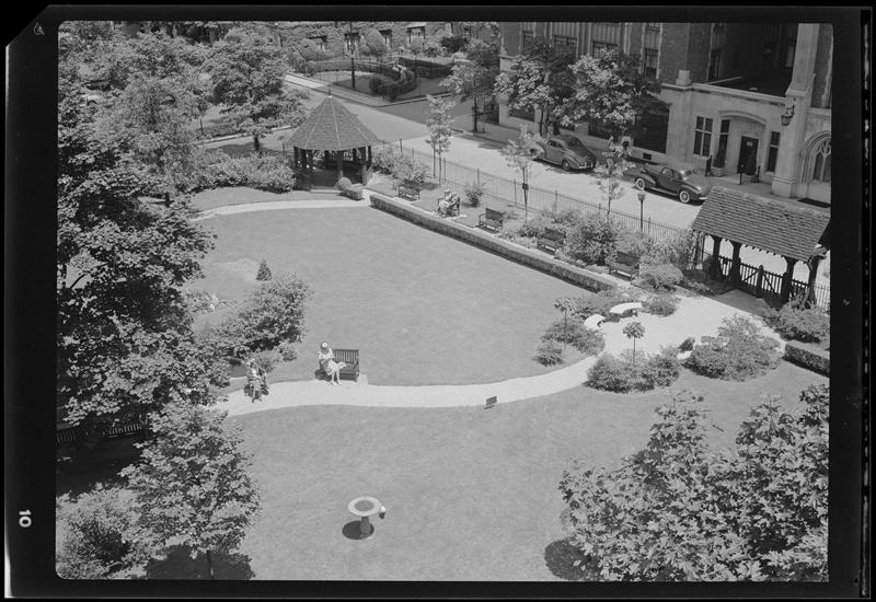 East 42nd Street. Tudor City, birds-eye from "The Manor" looking down and south with North Park in foreground.