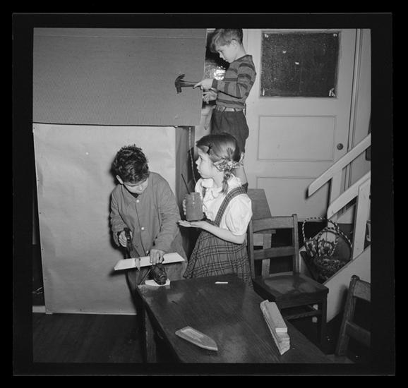 Brooklyn Friends School [boy painting a chair].