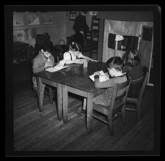 Schemerhorn Street. Friend's School, 1st grade class in running store.