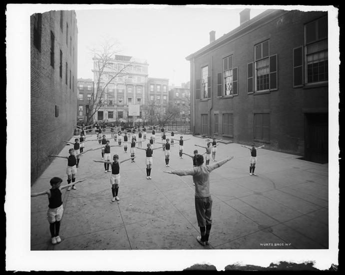 110 Schermerhorn Street. Friends school, children building castles and knights etc.