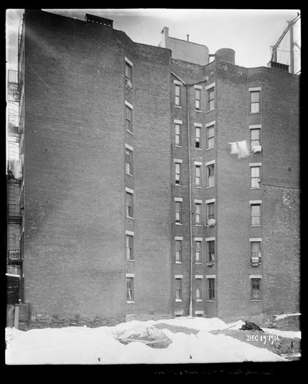 218 West 65th Street. Detail cracks in base west wall to extension.
