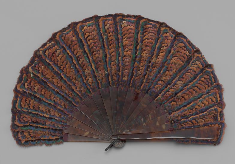 Folding feathered fan of Argus pheasant feathers