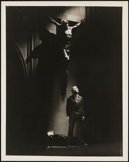 [Robert Loraine as Father Baird, Earle Larimore as John and Stanley Ridges as Loving during Act 1 of "Days Without End".]