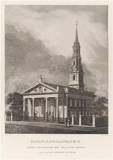 View of St. Paul's Church and the Broadway Stage, N. Y. 1831.