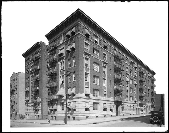 173rd Street and Morris Avenue, southwest corner. Apartment building