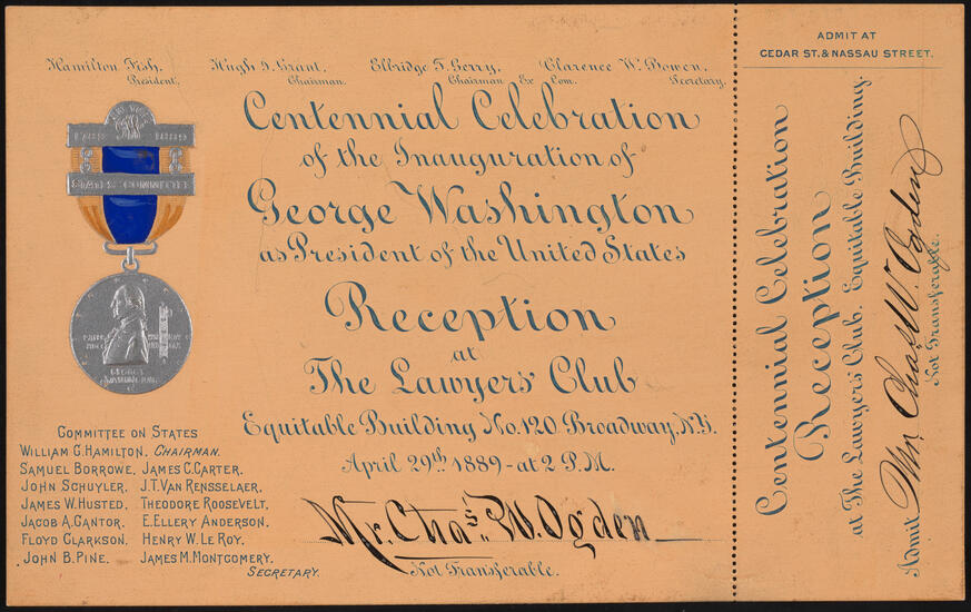 Centennial Celebration of the Inauguration of George Washington as President of the United States. Reception at the Lawyers' Club
