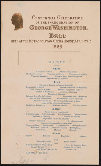 Banquet given in honor of the Centennial of the Inauguration of George Washington as President of the United States.