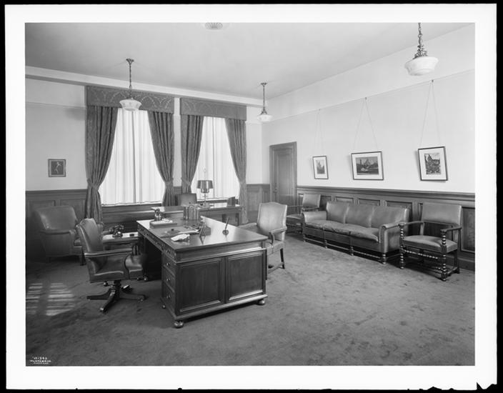 New York Life Insurance Company, interior office view, Mr. Aitken at desk.