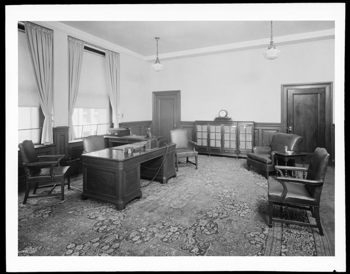 New York Life Insurance Company, interior office view, Mr. Aitken at desk.