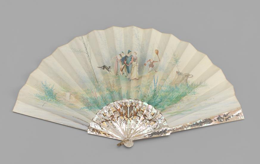 Folding fan with hand-painted paper leaf depicting the Judgment of Paris