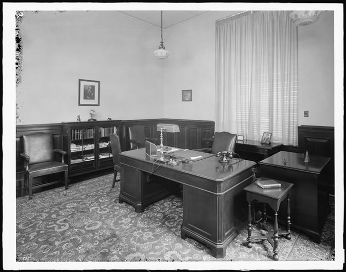 New York Life Insurance Company, interior office view, Mr. Aitken at desk.