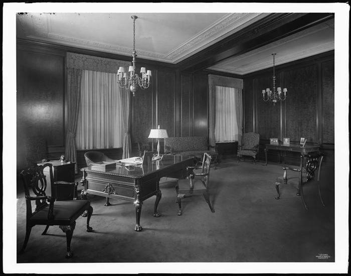 New York Life Insurance Company, interior office view, Mr. Aitken at desk.