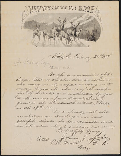 Banquet tendered to Grand Exalted Ruler Edward Leach by New York Lodge No. 1. B.P.O. Elks
