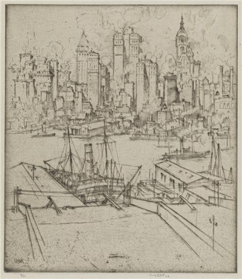 [New York, from Brooklyn Heights. The Hill-Bennett-Clover view.]
