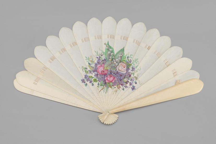 Brisé fan with painted ivory blades