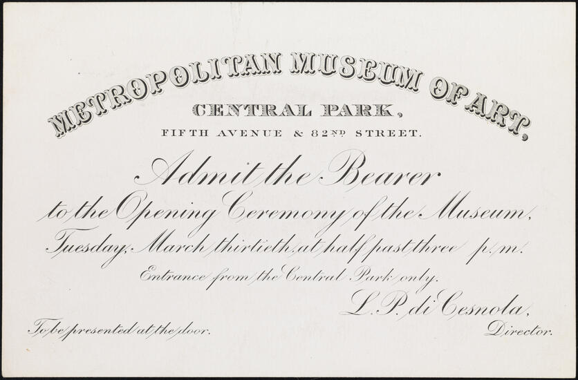 The Metropolitan Museum of Art, Inauguration Ceremonies of the New Building and Private View of Collections
