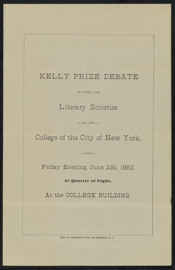 Kelly Prize Debate between the Literary Societies of the College of the City of New York